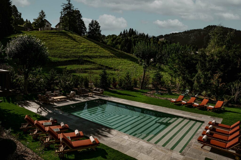 L’été, les paysages se transforment en écrin de verdure et d’horizons dégagés. La piscine extérieure, les nombreuses terrasses et le jardin aménagé invitent à une vie plus douce, baignée de soleil.